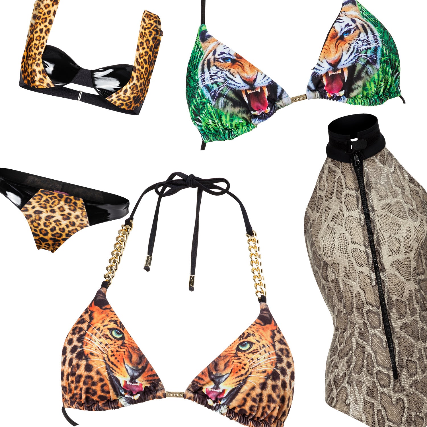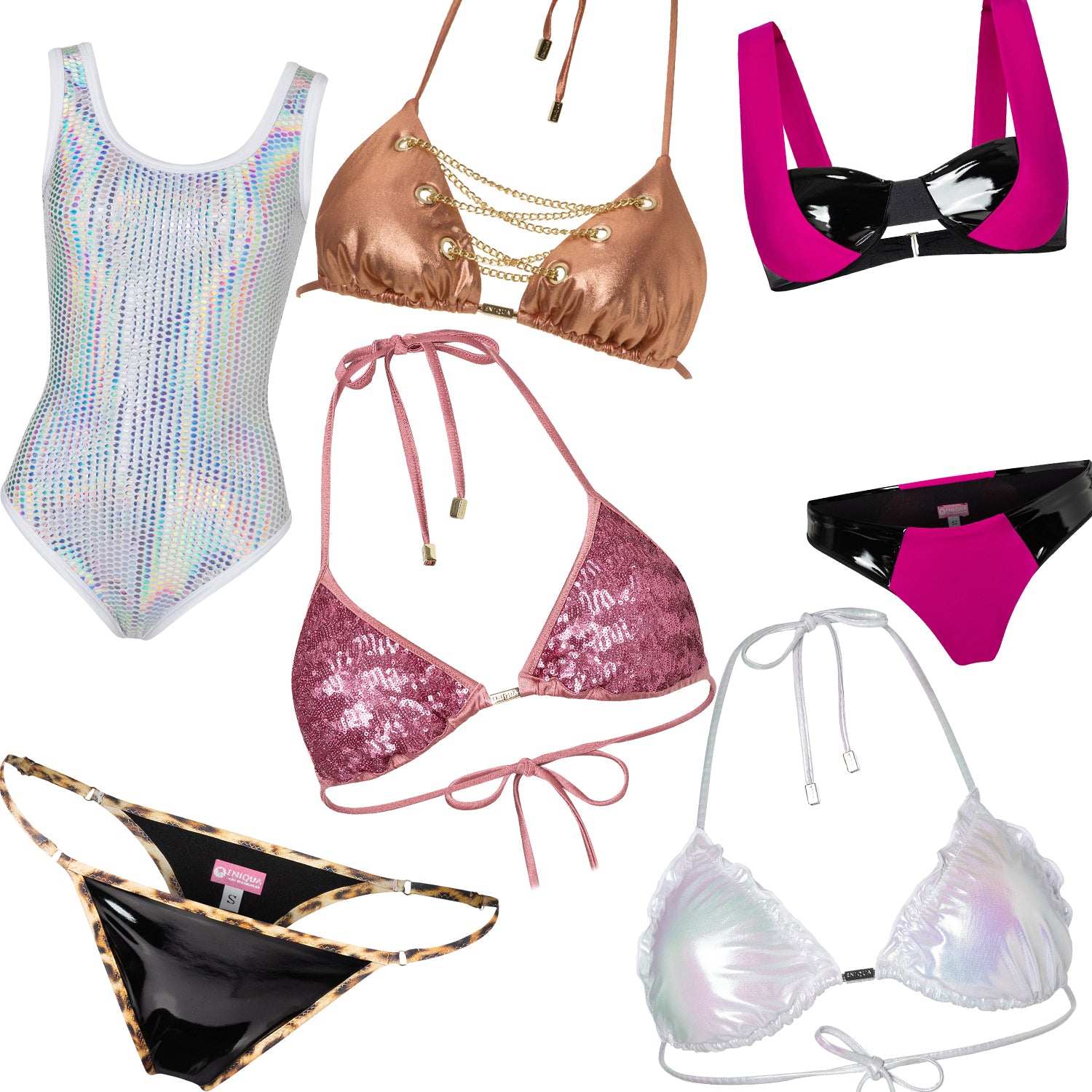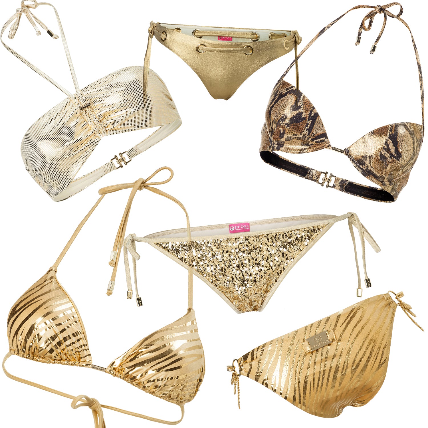 Exklusive Bikinis und ausgefallene Bademoden sind der Focus von Eniqua. Unsere Design Bikinis und besondere Strandmode greifen den Lifestyle berühmter Beachclubs von Saint Tropez, Marbella, Miami und Ibiza auf und sind die erste Wahl um sich im Beachclub oder am Strand glamourös in Szene zu setzen. Unsere 100% in Italien gefertigten Bikinis und Bademoden sind mit hochwertigen Elementen verziert, die im Zusammenspiel mit den luxuriösen, teils gold glänzenden oder strassbesetzten Stoffen einzigartige Kunstwerke bilden. Unsere Schnitte - klassische Triangle Bikinis, unterstützender Bügel Push up Bikini, sportlicher Neckholder, modischer Bandeau oder glamouröser Monokinis und Badeanzüge - haben eine perfekte Passform. Der eigens entwickelte Höschenschnitt "Beachclub-Cut", vereint auf einzigartige Weise die brasilianische mit der europäischen Bikini-tradition zu einem perfekt sitzenden Höschen. Besonder beliebt sind unsere metallic goldenen Bikinis. In unserem offiziellen Bikini Onlineshop warten viele exklusive und aufregende Bademoden auf Sie.